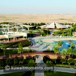 The park also contains an artificial lake of about 2500 square meters, and it also has an air-conditioned covered area and outdoor patios overlooking the lake, waterfalls, and fountains. And a restaurant for families, about two meters above the level of the surrounding green areas.