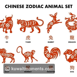 Chinese zodiac, or shengxiao (/shnng-sshyao/ 'born resembling'), is represented by 12 zodiac animals. In order, they are the Rat, Ox, Tiger, Rabbit, Dragon, Snake, Horse, Goat, Monkey, Rooster, Dog, and Pig.